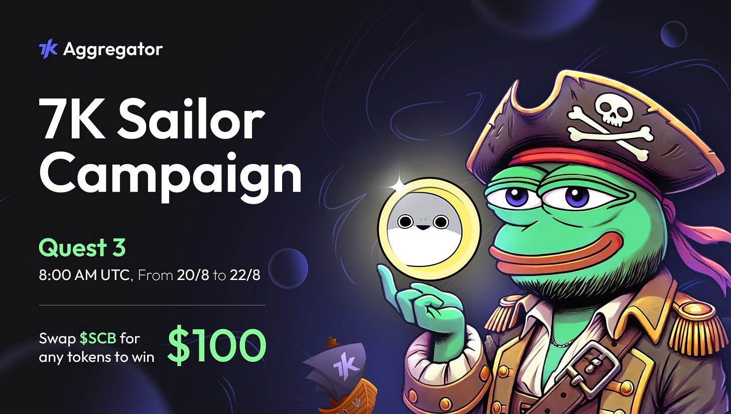 Swap $SCB Sacabamfun token on 7K Aggregator to any token and other tokens to $SCB and compete to earn $100 on $SCB